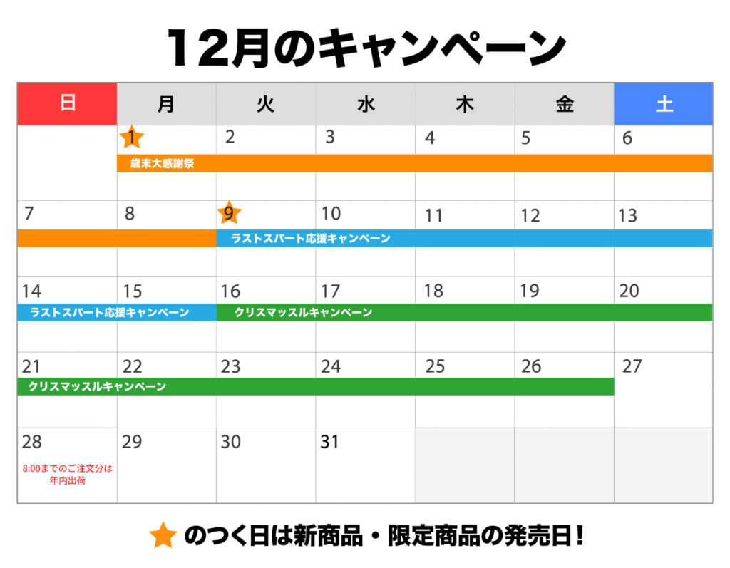 2025年12月のキャンペーンスケジュールはこちらです。