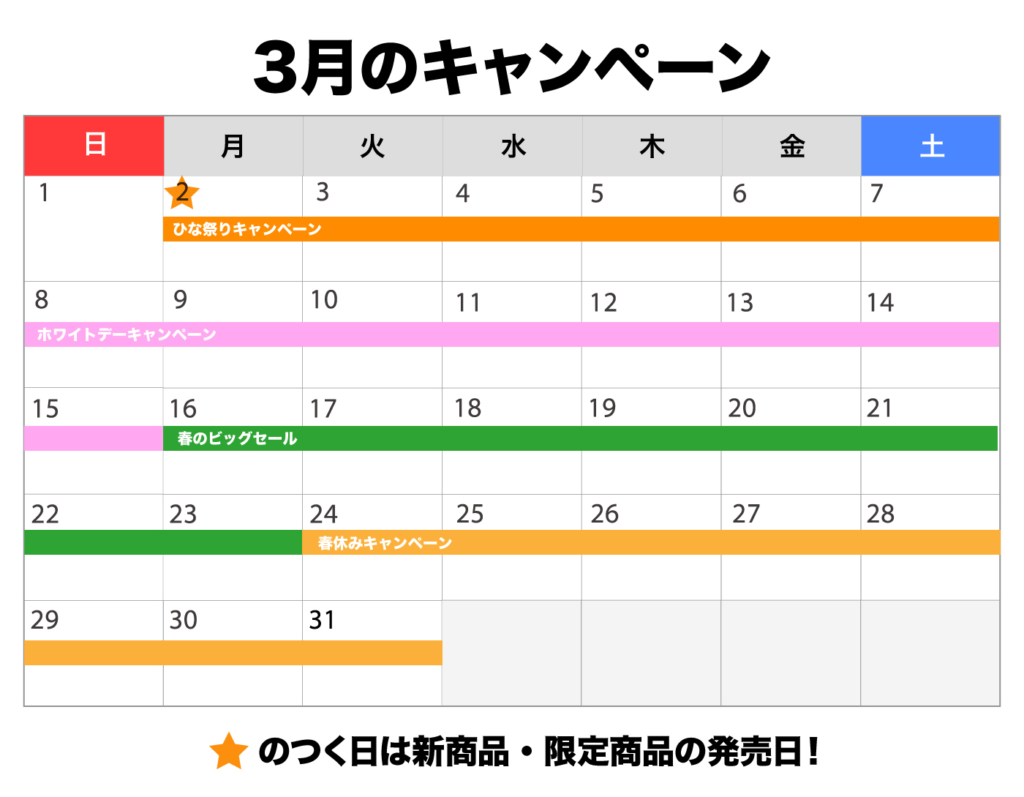 2026年3月のキャンペーンスケジュールはこちらです。