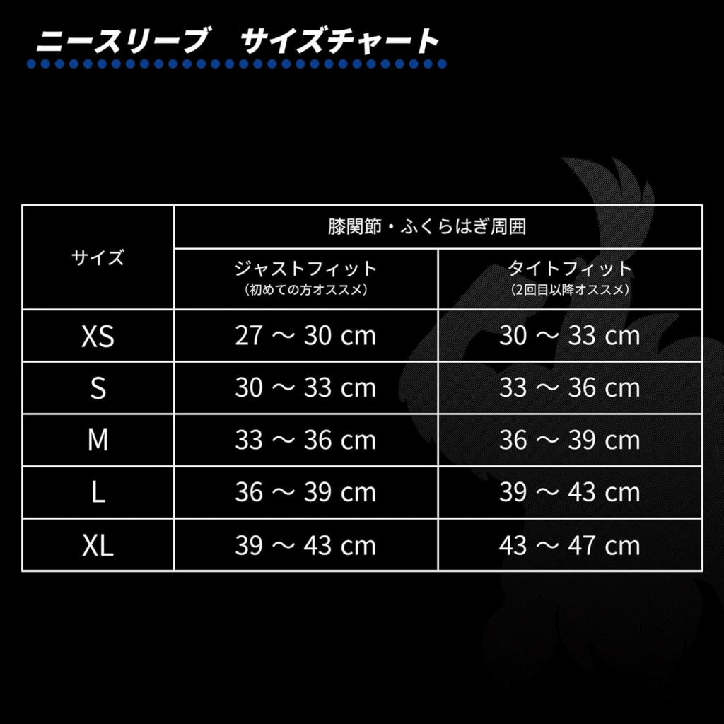 自分のサイズ:ふくらはぎ周り39cm、膝周り40cm。pk1400のMサイズを一年使用し縫い目が破れたのでこちらを購入。同じMサイズを注文するもpk1400に比べ伸縮性がないためふくらはぎが通らずLサイズに交換。装着後はpk1400に比べサポート感が格段に良く、安心してスクワットができるようになりました。