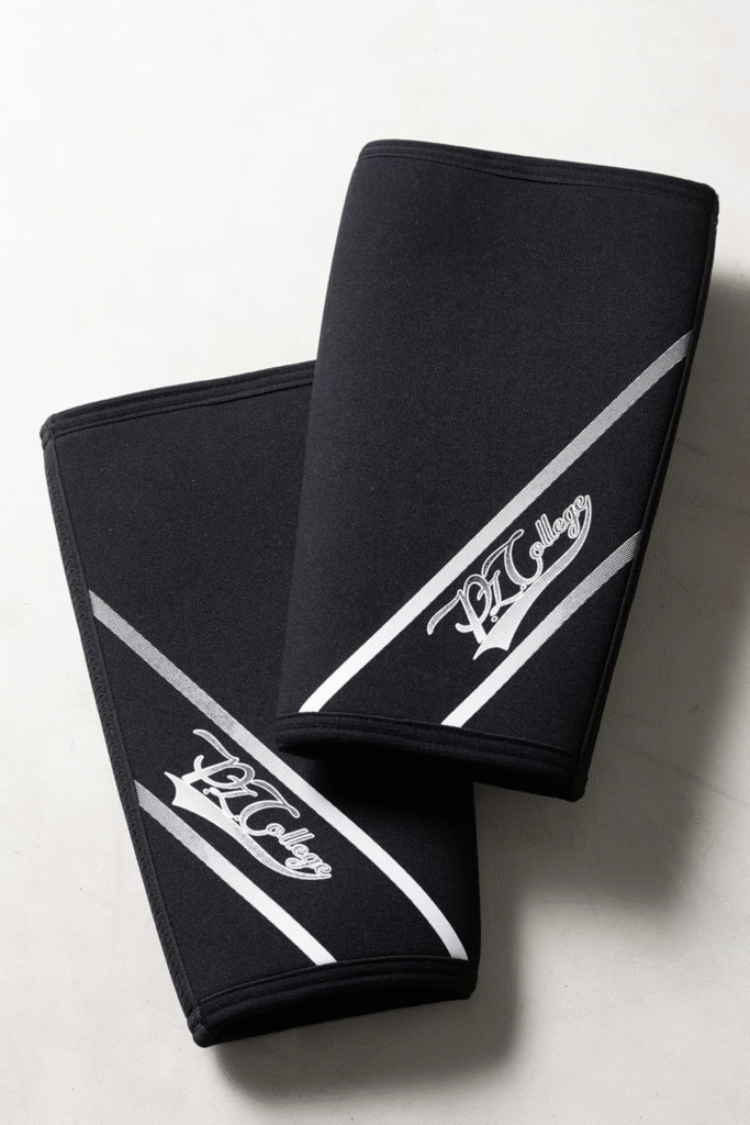 パワーリフティングを広めるために発信している、3人組「パワーチューブ」が作ったトレーニングギアブランド『P.L.College』のニースリーブ。